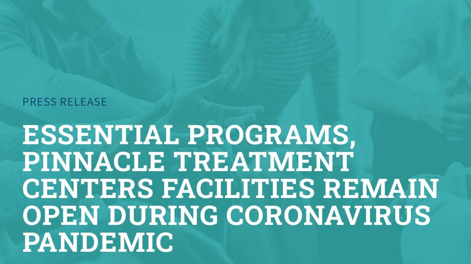 In a statement released to Pinnacle Treatment Centers’ employees last night, Pinnacle CEO Joe Pritchard said, “There have been some messages recently from various state officials stating that all businesses that are not ‘life-saving’ businesses must close – this does not apply to us. The federal, state and local authorities have deemed our work ‘essential’ and, as such, need us to continue to operate. It is extremely important that we continue in our mission and remain steadfast for our fellow teammates and patients.”
